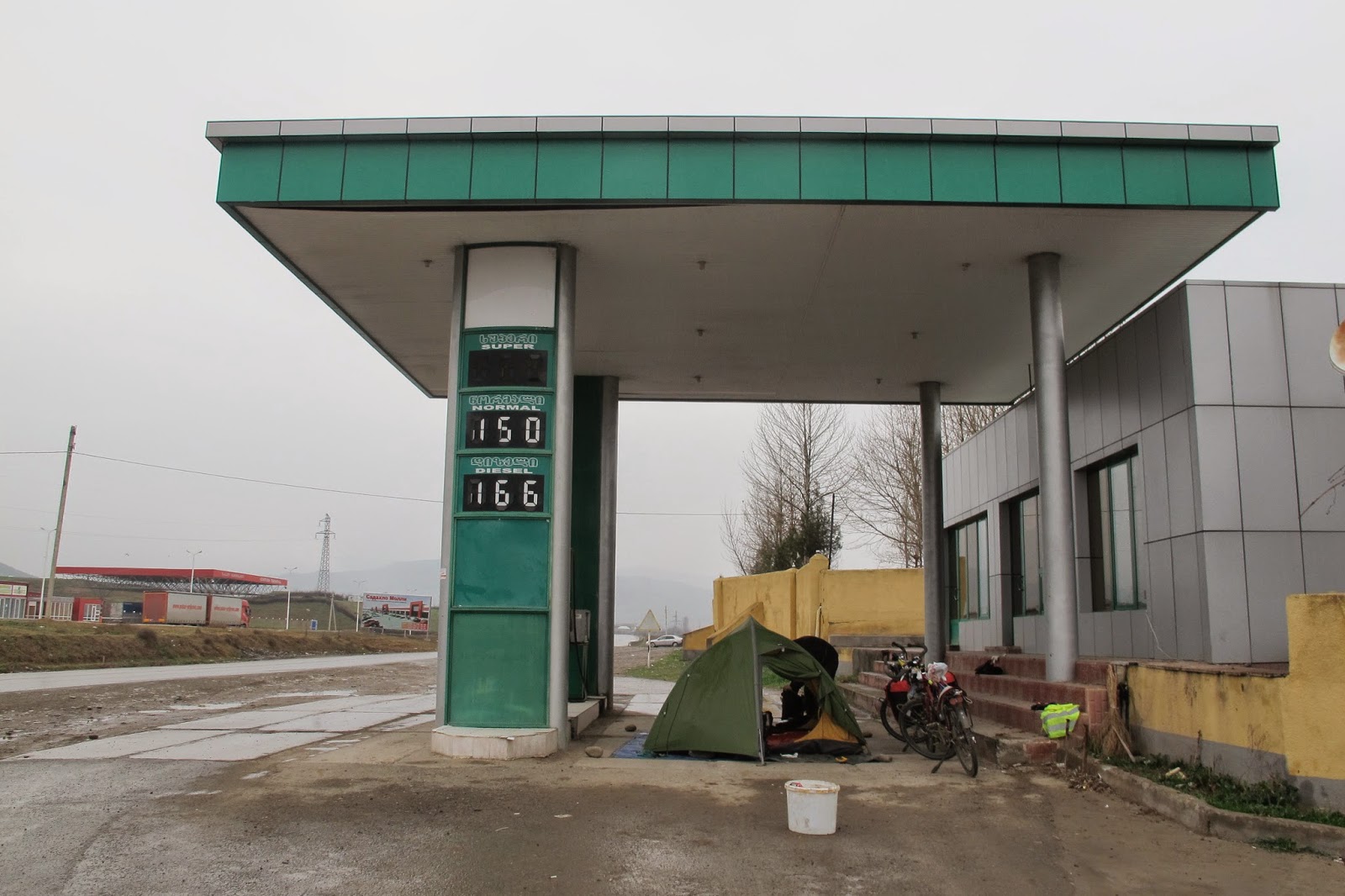We spent the last night on Georgian land in an abandoned gaz station. Here we met a couple of friends: an Armenian and an Azeri who have to go to Georgia to see each other!!!